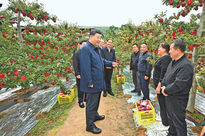 9月10日至13日,中共中央总书记、国家主席、中央军委主席习近平在甘肃考察。这是11日上午,习近平在天水市麦积区南山花牛苹果基地考察时,走进果林了解相关种植、技术和管理情况。 |