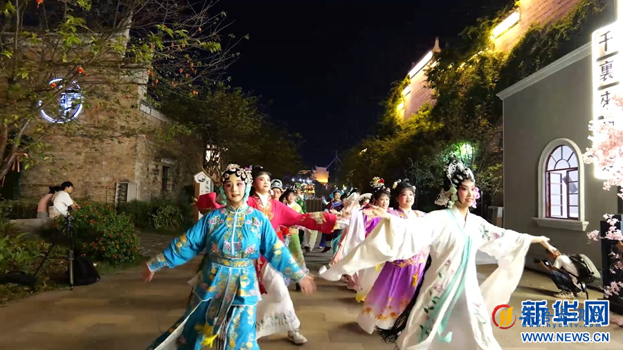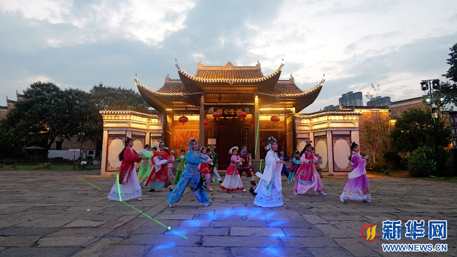 近日,在江西省万载县,非遗花灯戏、傩舞快闪活动在万载古城景区上演,吸引了不少游客驻足观赏。为丰富万载古城景区活动内容,万载县文化馆每周六开展“国潮”花灯戏、傩舞快闪活动。20多名演员身着传统服饰跳起动感的现代舞蹈,以“国潮”形式创新演绎非遗之美,让现场游客耳目一新。(邓辉、黄敬富)