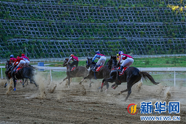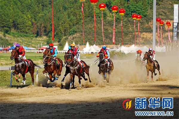 三都水族自治县西部赛马城,选手在赛马比赛中(10月5日摄)。新华网发(龙建睿 摄)