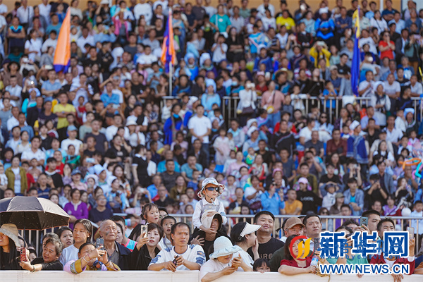 在贵州省黔南州三都水族自治县西部赛马城,人们在观看比赛(10月5日摄)。新华网发(龙建睿 摄)