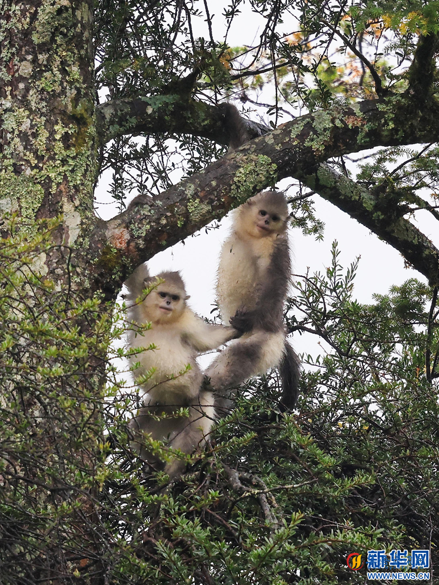 滇金丝猴在树上嬉戏(11月5日摄)。新华网发(孙文来 摄)