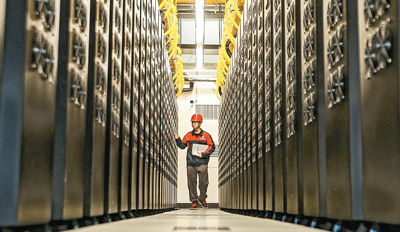 工作人员在贵州省贵安新区贵安超算中心数据机房内工作。 |