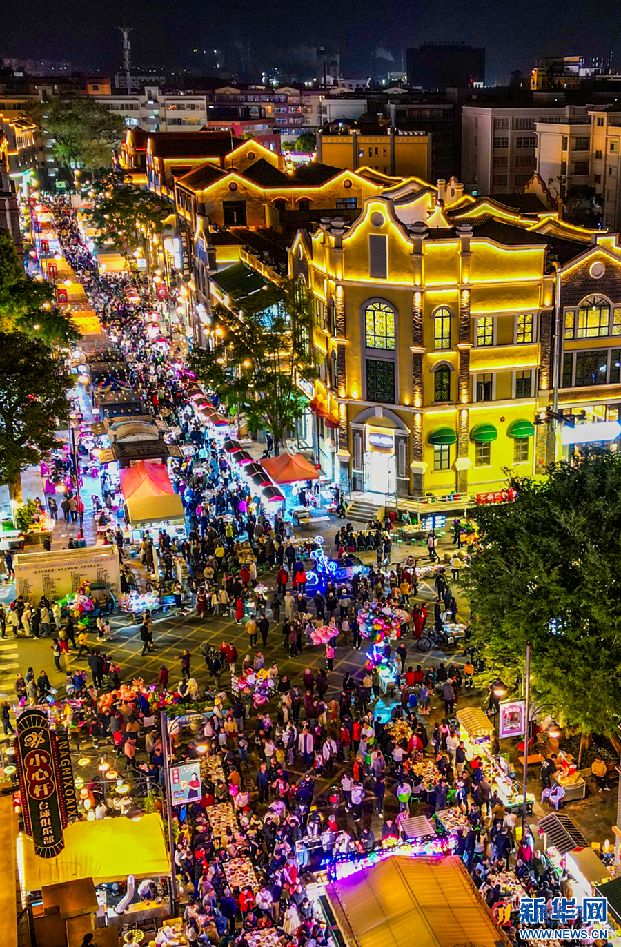 近日,云南省红河哈尼族彝族自治州开远市首届民族特色长街宴在开远市南正街主题街区举行,游客们齐聚热闹长街,在美食与歌舞中共赴狂欢之夜。现场,近300张长桌齐齐排开,长龙般串起整个街区,大家举杯同饮,开怀同唱,欢笑声伴随着悠扬的祝酒歌声,回荡在长街上空。在韵味十足的商业街区举办民族特色长街宴,让游客们深入感受当地的歌舞文化、风土人情。(开远市融媒体中心 陶家淇 杨丹)