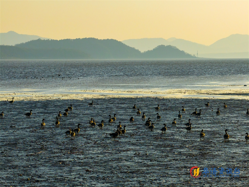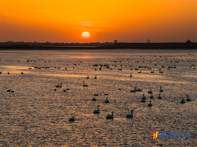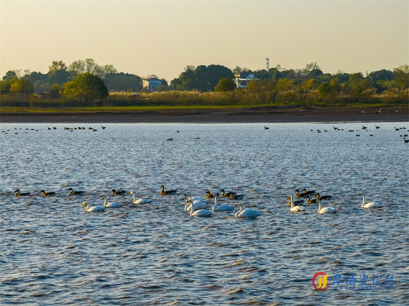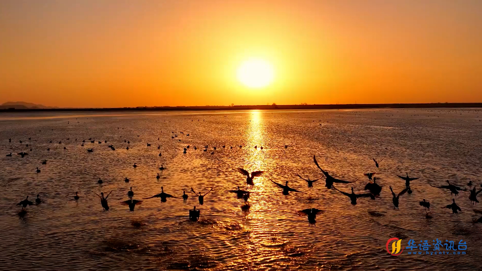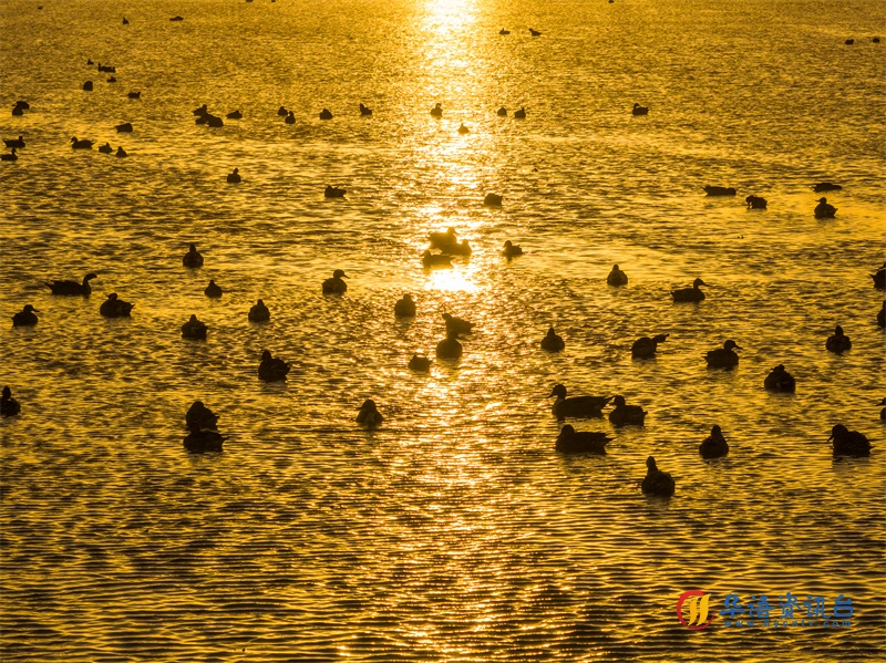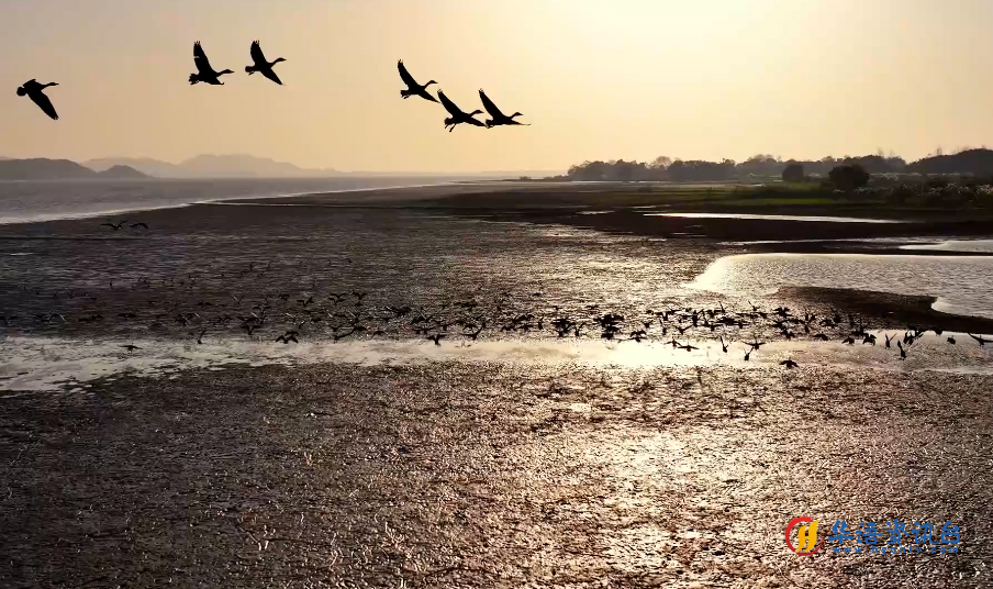 近日,在位于安徽省池州市的升金湖国家级自然保护区,成群的候鸟或在浅滩觅食休憩,或展翅翱翔,与冬日的晚霞相映成趣,构成了一幅美丽的生态画卷。