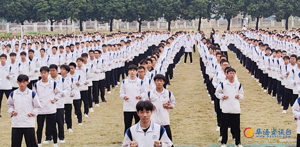 勒流中学的学生们在大课间操时演练咏春拳操。