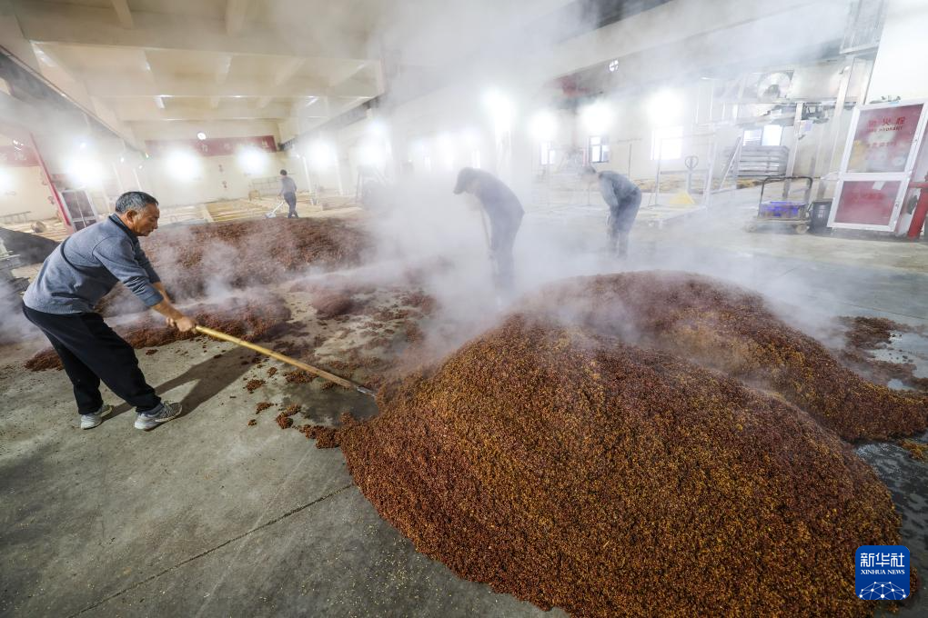 冬日里,浙江省绍兴市诸暨市同山镇酒香四溢,当地沿用传统工艺摊晾拌曲、做焐、发酵,进入了最忙碌的酿酒季节。