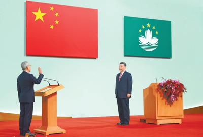 12月20日上午,庆祝澳门回归祖国25周年大会暨澳门特别行政区第六届政府就职典礼在澳门东亚运动会体育馆隆重举行。中共中央总书记、国家主席、中央军委主席习近平出席并发表重要讲话。 |