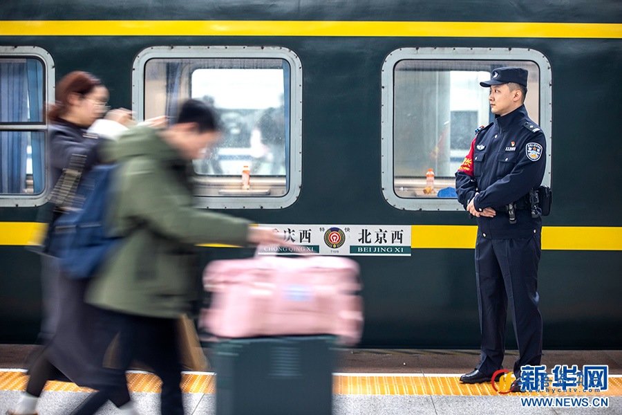 成都铁路公安局重庆公安处乘警支队民警祁悦。新华网发(胡勇 摄)