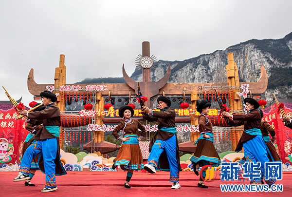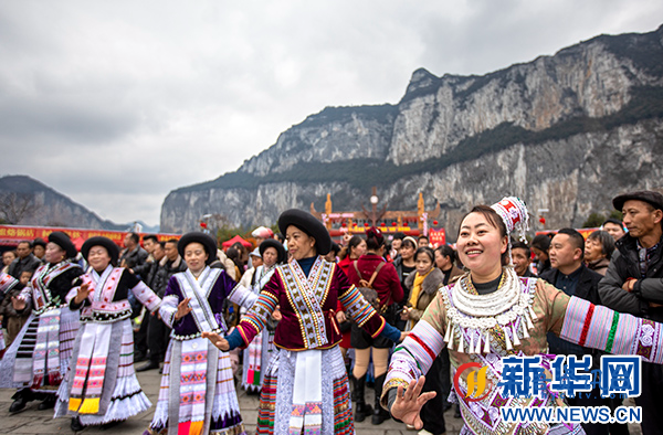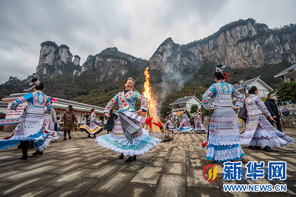 新华网贵阳2月4日电(刘昌馀)跳花坡、打糍粑、长桌宴、篝火晚会……2月3日,农历正月初六,二十四节气的立春,在贵州省黔西市新仁苗族乡化屋村,当地苗族群众身着盛装、载歌载舞举行“阿酬”节系列活动。