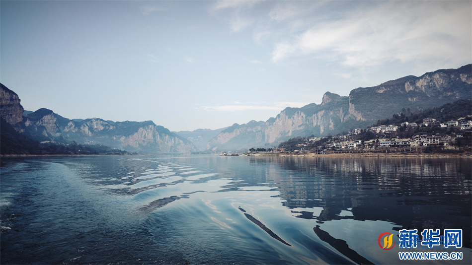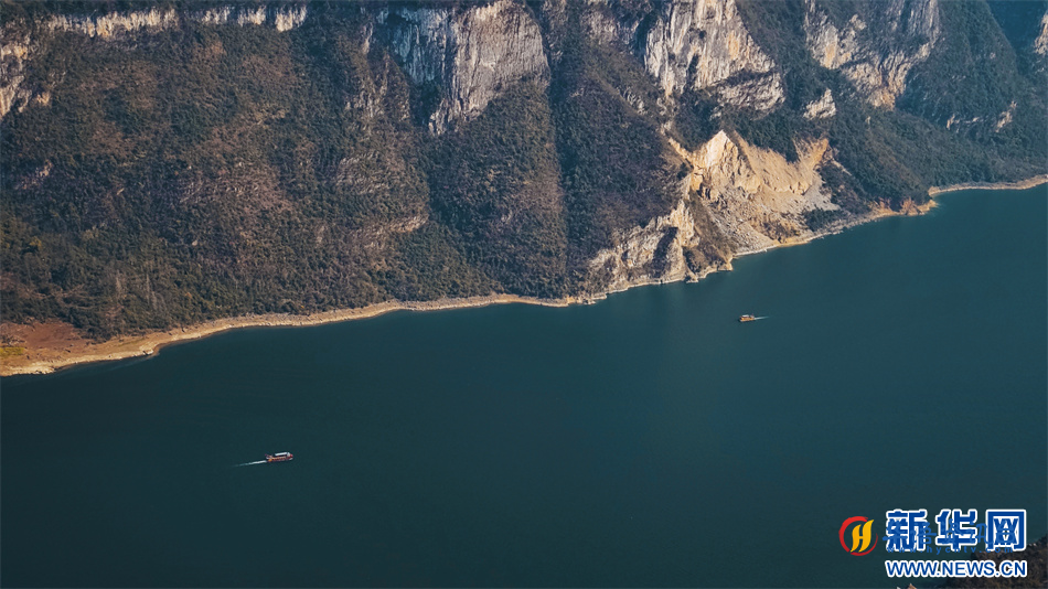 3月1日,两艘游船行驶在化屋村段的乌江内。新华网 卢志佳 摄