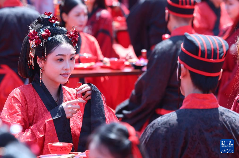 当日,多地举行传统形式的集体婚礼,倡导婚事新办简办,演绎“中式浪漫”。