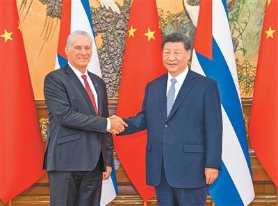 迪亚斯—卡内尔表示,纪念中国人民抗日战争胜利80周年活动隆重热烈,具有重大历史意义。中国为世界反法西斯战争胜利作出的重要贡献将被永远铭记。古巴是拉美第一个和中国构建双边命运共同体的国家,两党两国关系密切,友谊牢不可破。古方坚定奉行一个中国原则,感谢中方对古巴经济社会发展给予的无私支持和帮助,期待继续加强全方位合作,高质量共建“一带一路”,愿为中国企业提供更好营商环境。古方高度赞赏、完全支持习近平主席提出的全球治理倡议,将积极落实,推动国际治理体系更加公正合理,维护发展中国家共同利益。
