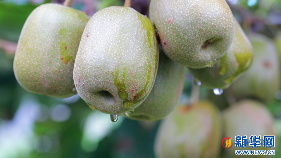 晨露下的猕猴桃(9月5日摄)。新华网发(李伟建 摄)