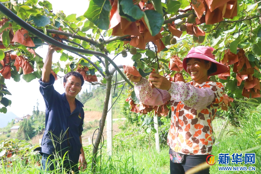 果农采摘猕猴桃(9月5日摄)。新华网发(李伟建 摄)