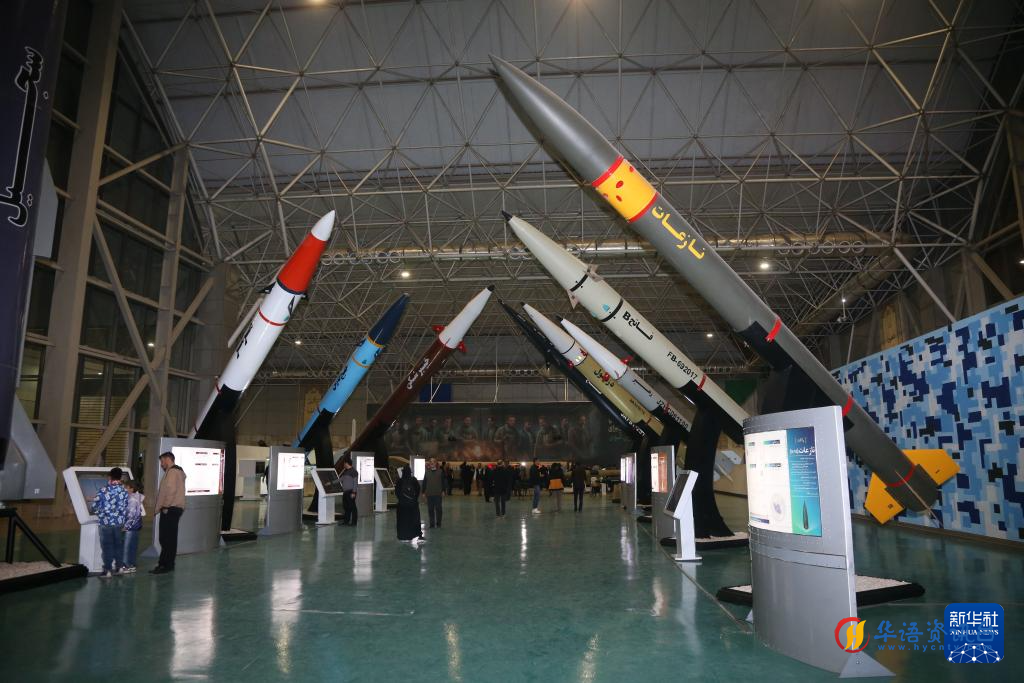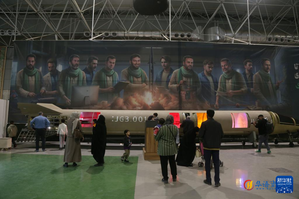 11月12日,民众在伊朗首都德黑兰举办的展览上参观新型导弹。新华社记者 沙达提 摄