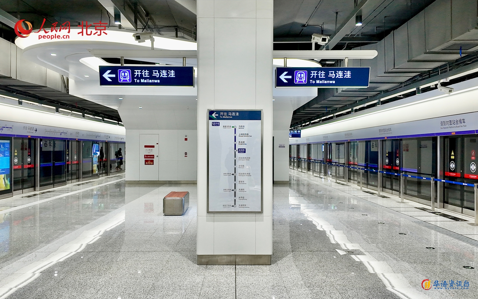 18号线以“光影隧道”为设计主题,通过“裸装+简装”的巧妙结合,尽显简约之美。“全线车站的装修都采用了靓丽的色彩,并注重灯光与色彩引导,着力为乘客打造温馨、舒适的人性化车站空间。”北京地铁运营三分公司18号线站区负责人王力奎介绍,回龙观西大街站是最“特殊”的一站,它是北京地铁首个大跨度全无柱车站,无柱设计让空间显得十分开阔通透。