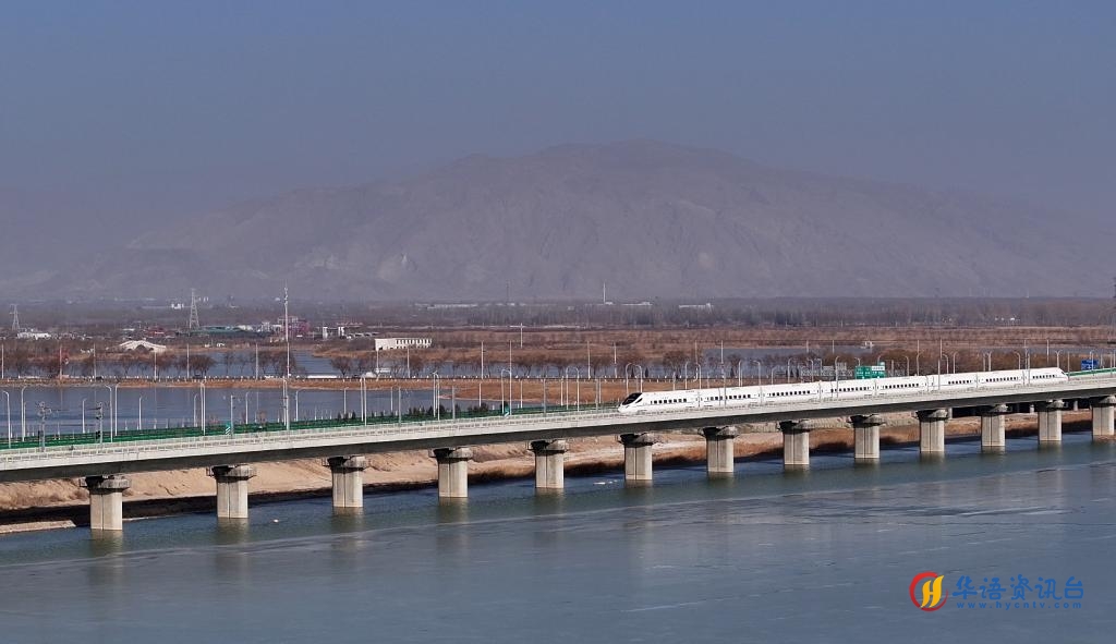 2025年12月23日,包银高铁首发列车D4667次动车组行驶在石嘴山境内。新华社记者 王鹏 摄
