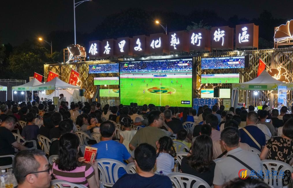 2025年10月4日,球迷在南京市建邺区银杏里文化艺术街区的“苏超”“第二现场”观赛。新华社记者 李博 摄