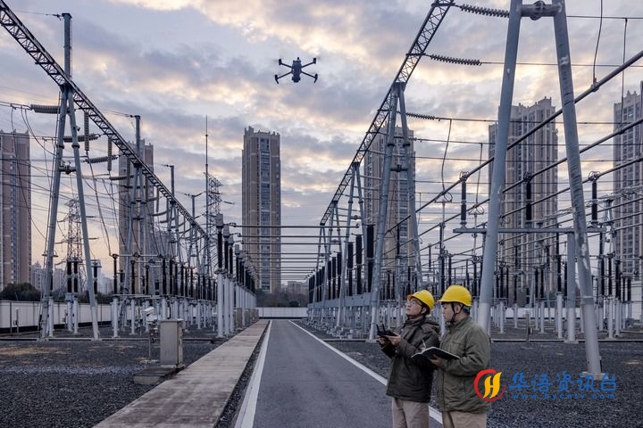 2月17日,国网泰州供电公司运维人员在220千伏寺巷变电站利用无人机巡检电力设备。新华社发(汤德宏 摄)