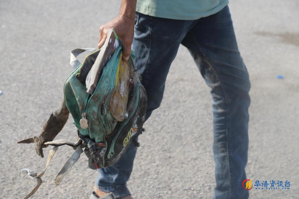 这是2月28日在伊朗南部米纳卜市被袭击的小学拍摄的书包。