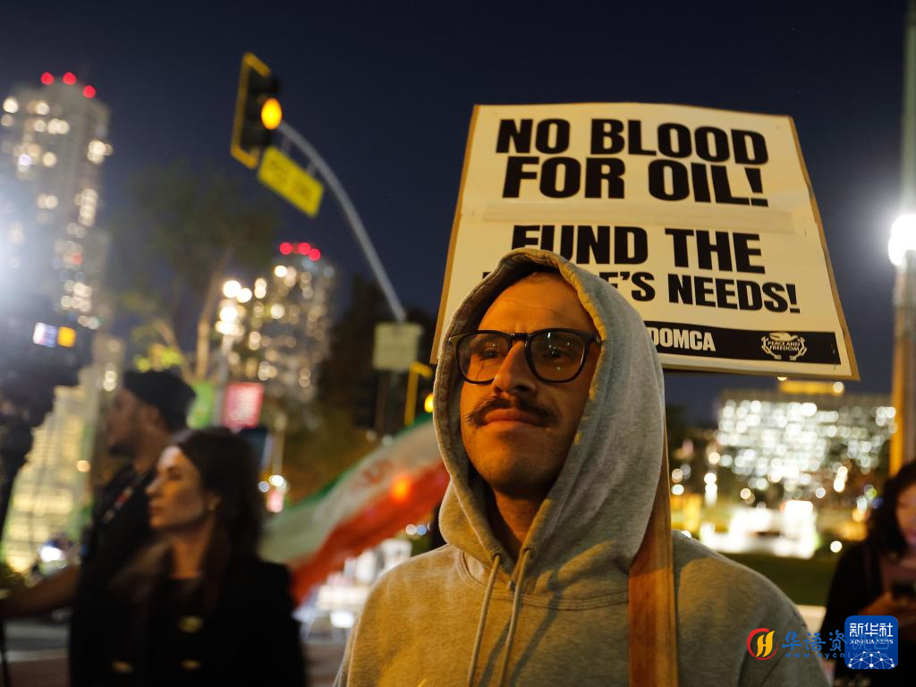 3月2日,人们在美国加利福尼亚州洛杉矶参加集会,抗议美国对伊朗发动军事打击。新华社发