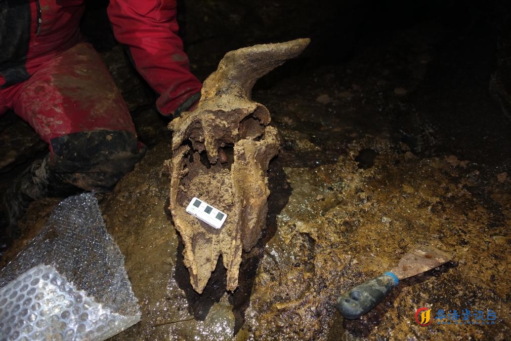 “亚洲第一长洞”贵州绥阳县双河洞科考取得重要新突破,这里发现我国迄今保存最完整的羚牛化石,这也是晚更新世羚牛的首个可靠化石记录。相关成果于4月2日在我国学术期刊《科学通报》上发表。 图为在贵州绥阳双河洞区域科考发现羚牛化石的头骨、股骨及上颌齿列的标本图。(受访者供图) 从1988年至今,贵州科学院山地资源研究所持续组织科考队对双河洞区域开展探测与科研。2025年5月,科考队成员、法国洞穴探险家让·波塔西在对双河洞周边金钟山区域开展系统性洞穴探测与野外考察过程中,发现一具保存相对完整的大型哺乳动物骨架,其形态特征引起了他的关注。 随后,科考团队对周边沉积环境进行进一步清理与辨识,又在距该标本约20米处发现另一具个体化石。经形态测量、年代学测定及系统分类分析确认,两具化石均为羚牛,分别是1头未成年个体和1头成年个体,均来自晚更新世晚期,距今约1.5万年和1.1万年。 “我们研究推测,两只羚牛均从洞口进入洞穴,因洞道狭窄崎岖,不慎跌落至洞内约5米高的陡坎之下,最终受困无法返回。”让·波塔西说。 科考人员在贵州绥阳县双河洞发现羚牛化石的洞口,为入洞勘查做准备。(受访者供图) “羚牛化石的发现,使我们对这一物种历史生存环境有了新的认知。”论文第一作者、贵州科学院山地资源研究所副研究员王德远介绍,现生羚牛是典型高寒物种,主要栖息在海拔2000米至4500米以上的高山森林与草甸,仅冬季短暂下移至2500米以下针叶林带。而贵州绥阳双河洞地处大娄山山脉,周边区域海拔仅600米至1700米,气候温暖湿润,与现生羚牛的典型生存环境差异显著。此次双河洞区域出土的化石保存完整,为研究羚牛的演化脉络与历史分布变迁提供了关键实证。 这是在贵州绥阳双河洞发掘现场发现的羚牛头骨。(受访者供图) 据了解,在2025年10月进行的贵州绥阳双河洞第24次国际洞穴科考期间,科考人员又新发现2具较为完整的羚牛个体化石,至此该洞穴内发现的羚牛化石总个体数已达4具。 值得一提的是,科研人员已在双河洞内发现52具大熊猫化石遗骸,主要为晚更新世巴氏大熊猫,洞中大熊猫化石数量多、保存完好备受关注。同时期还发现苏门答腊犀、剑齿象、鬣羚等动物化石遗骸,这表明羚牛很可能是中国西南山区中晚更新世“大熊猫—剑齿象动物群”的重要成员之一。 羚牛又名扭角羚,是国家一级重点保护野生动物,与大熊猫、金丝猴齐名。(记者李黔渝) (责编:习泽)