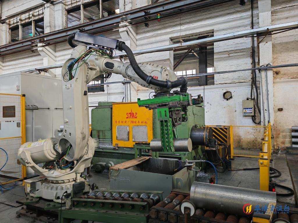 在中铝集团东北轻合金有限责任公司“数智化圆锭加工园区”,机械臂正在作业。新华社记者 朱悦 摄