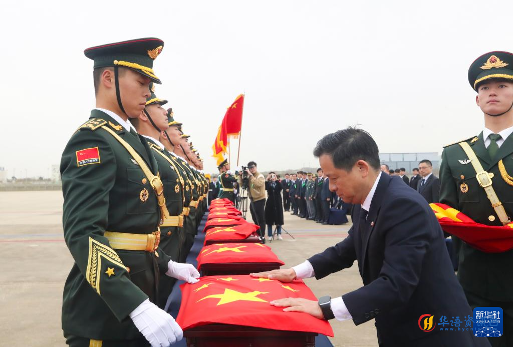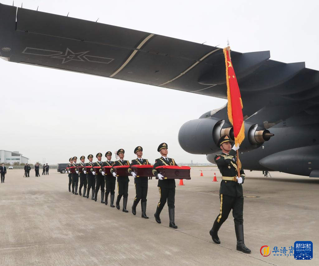 退役军人事务部、中央宣传部、中央对外联络部、中央网信办、外交部、国家发展改革委、财政部、中央军委政治工作部等军地有关部门组成的中方交接代表团组全体人员、中国驻韩国大使馆相关人员共同见证迎接志愿军烈士回家。