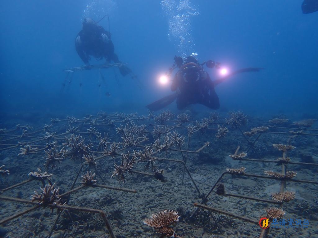 王爱民团队在海底种植珊瑚。新华社发