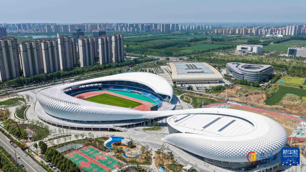 这是4月24日拍摄的宿州奥体中心项目(无人机照片)。
