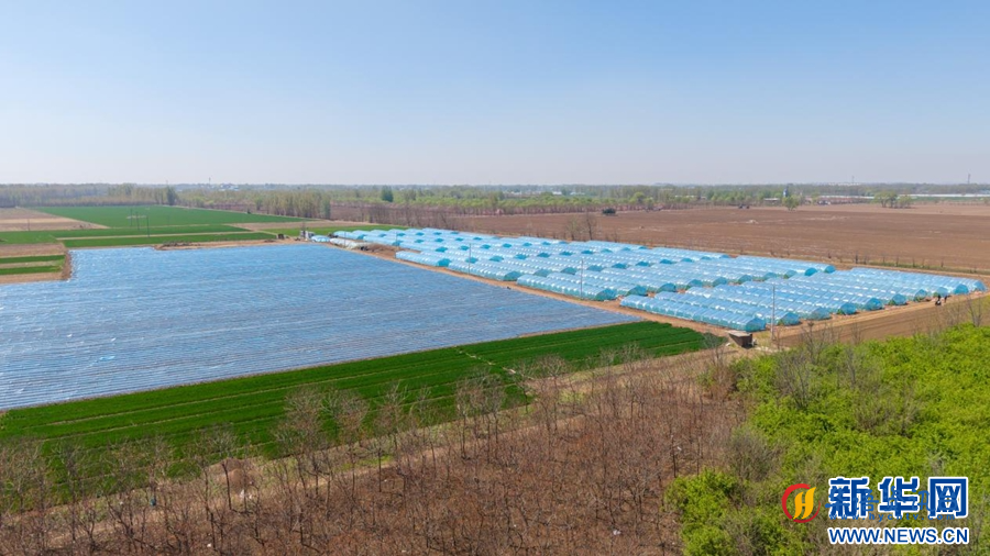 航拍双堂乡甘薯种植大棚和覆膜的甘薯苗。李鑫 摄